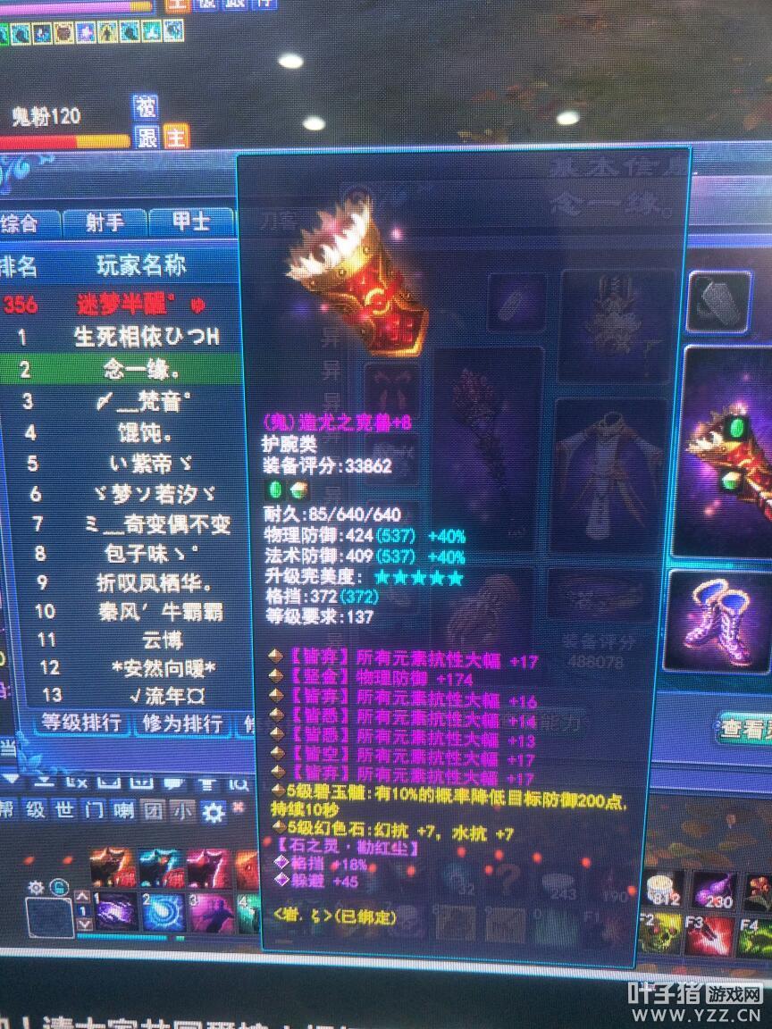 倩女幽魂中如何有效的针对法术系呢?元素抗百分比的加成主要看基础元素抗的多少,而副手又是唯一能出元素大幅抗性的装备。所以除了全身元素抗百分比的切装,一个多大幅的副手也是必不可少的。 今天我们来欣赏一个6大幅护腕,仅仅一个护腕就有94点全元素抗的属性!简直是所有法系的克星啊。 今天的牛图欣赏你觉得如何? 更多精彩内容,尽在叶子猪倩女幽魂。 [编辑:辰辰]