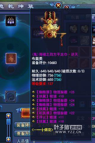 倩女幽魂中,敏捷属性影响物理、法术命中以及物理、法术躲避。而物理躲避值越高,当对方的物理技能攻击你时,就越不容易命中,因此玩家通过装备属性提高敏捷,可以大大增加自身能力。游戏中有的玩家专注走法术躲避路线,有的玩家专注走物理躲避路线。下面就有一件躲避神器,逆天4物理躲避4敏捷的逆天法术头盔。 更多精彩内容,尽在叶子猪倩女幽魂。 [编辑:子衿]
