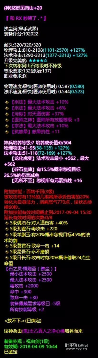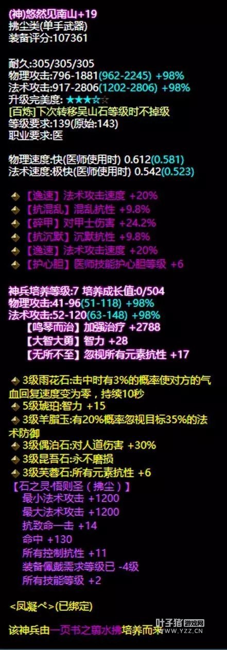 倩女幽魂中医师的武器是拂尘,虽然医师的定位是辅助,但是不少医师妹子也拥有输出的心,这把武器不仅可以满足医师妹子辅助加血的治疗量还可以满足医师妹子一颗想要暴力输出的心,7绝三最大,在原有的宗法基础上又洗出了两个双宗法最大! 什么?三宗法23%还不能满足你想要输出的心?你这把6绝无钻加不修的武器够了吗?不够的话打个3级肾,一定能让其他玩家看见就肾虚! 还有这把6绝三最大26%带眩晕抗的扫把,配上5级捂着肾7级神兵输出治疗辅助都是杠杠的! 下面这把可谓是医师的神器了,虽然不是鬼,但是属性是每个医师妹子梦寐以求的双攻速,双控制抗百分比加上医师护心胆+6,小编看着都眼馋! 更多精彩内容,尽在叶子猪倩女幽魂。 [编辑:子衿]
