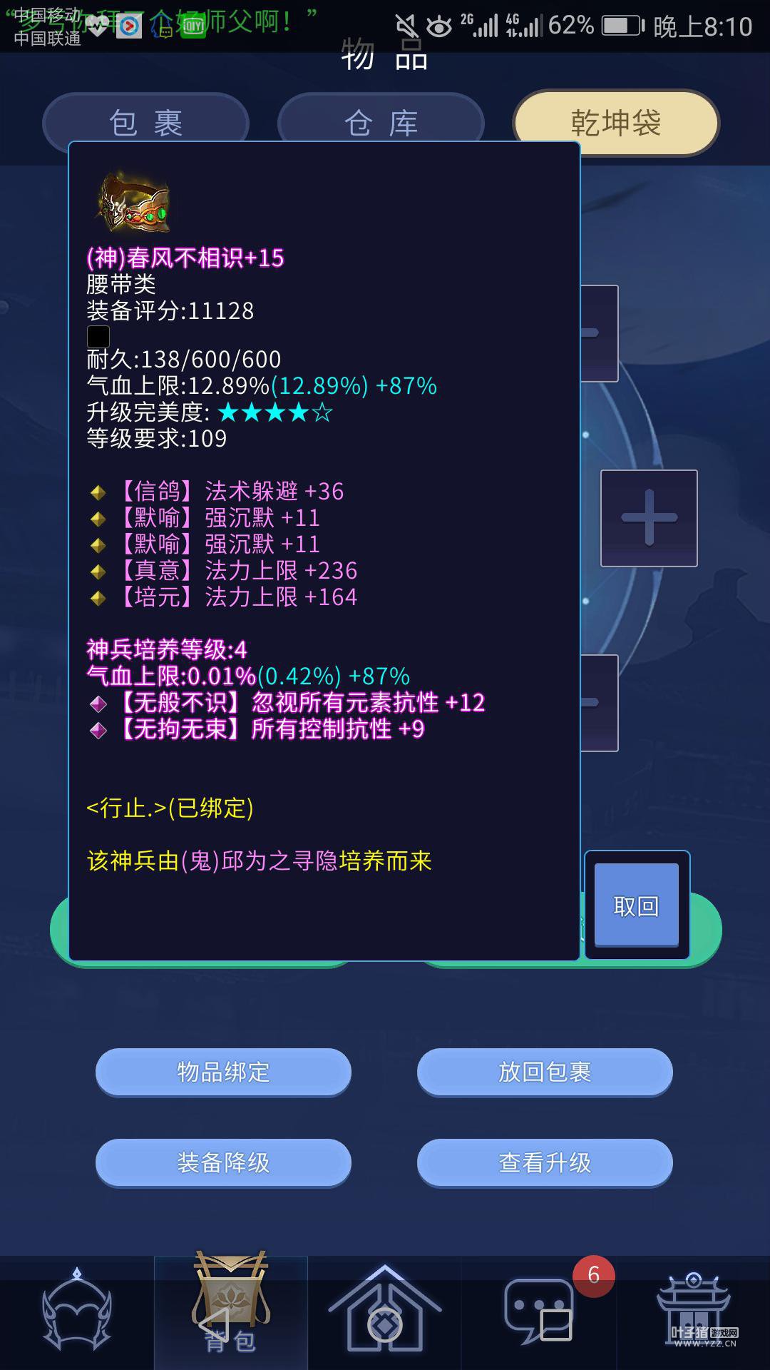 倩女幽魂中双强控制的属性一向是有价无市的,一有双强控制的装备土豪们都是毫不吝啬的出高价购买。闲来无事想抽抽腰带,说不定抽出一个无钻呢!可是居然让我抽出一个固定双强沉默!心好痛,我为什么不用不绑定的腰带抽呢!错失一个发财的机会! 更多精彩内容,尽在叶子猪倩女幽魂。 [编辑:子衿]