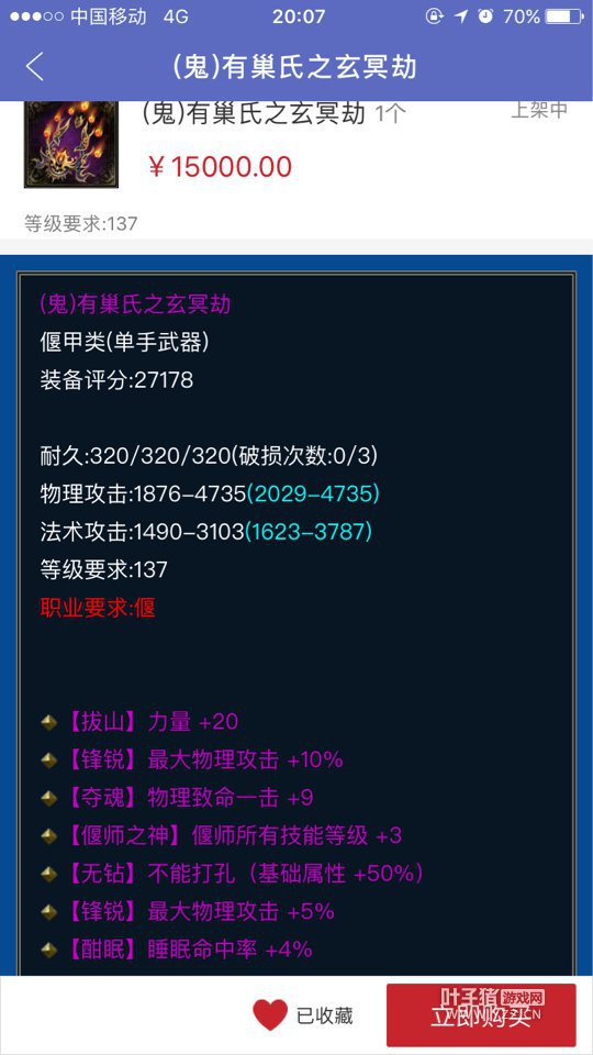 倩女幽魂中每个人都想拥有一把核武器,作为一个抽废了无数把武器的人,小编深深的体会到要抽出一把核武器需要多么好的运气,然而打开藏宝阁就看见别人直接洗出来的7绝无钻双最大的核武器,默默的流泪,这让抽冰抽核武器的人情何以堪啊,心都要碎了! 更多精彩内容,尽在叶子猪倩女幽魂。 [编辑:子衿]
