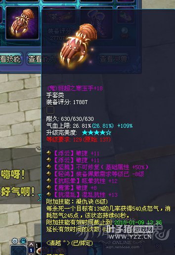 倩女幽魂中每个手套和腰带的固定属性都是固定双抗,有的玩家为了追求敏捷或者其他属性选择了抽冰,抽出了固定双敏不可修加轻鸿,少了抗性怎么办?没关系,再洗洗双抗就回来了,还带一条敏捷哦!这手套在129要逆天了! 更多精彩内容,尽在叶子猪倩女幽魂。 [编辑:子衿]