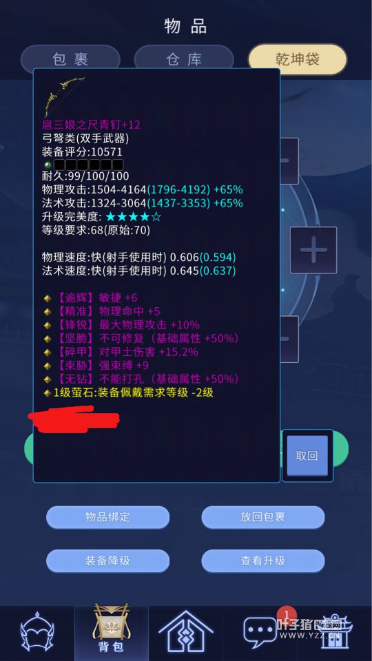 倩女幽魂中射手和射爷之间的差距在哪里呢?一个千里之外取人性命,事了拂衣去,深藏功与名。一个拼命输出可能也打不死人,最后还因为脆皮被人反杀!有时候,射手和射爷之间的差距就在一个武器上,有一个好武器,那就是射爷了。三个青花瓷洗出7绝不可修复和无钻,这武器用来打比武简直棒棒的! 更多精彩内容,尽在叶子猪倩女幽魂。 [编辑:子衿]
