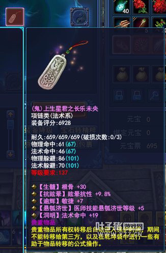 倩女幽魂中项链的作用主要是用来提升人物的技能等级,其次增加躲避和命中!这个项链抽废了两次,还原了两次,重要两个冰抽成了神器,也不辜负主人对他不抛弃不放弃的希望!固定根骨,眩晕抗百分比,敏捷,医师70绝技悬壶济世,这要是再洗出一个护心胆+6,那就是奶妈神器了! 更多精彩内容,尽在叶子猪倩女幽魂。 [编辑:子衿]