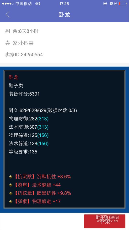 倩女幽魂中提高控制抗性可以减少被控制职业控制的时间,要将抗性堆到极致,双抗的装备是必须的!但是双抗在游戏中还是比较难洗的属性!但是小编听说有一双135等级名字叫卧龙的鞋子很爱出双抗,而且属性还都是固定的!不信你自己看! 更多精彩内容,尽在叶子猪倩女幽魂。 [编辑:子衿]