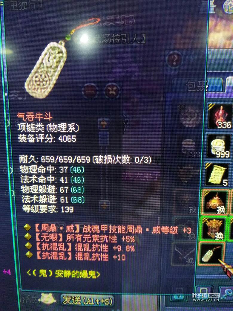 倩女幽魂中项链最主要的作用还是给人物增加技能等级,但是如果遇到这样属性的项链也不错!双混乱抗加所有元素抗性,作为抗性项链可以说是很棒了,美中不足的就是缺少一个有用的技能,不然又是一个极品项链呀! 更多精彩内容,尽在叶子猪倩女幽魂。 [编辑:子衿]