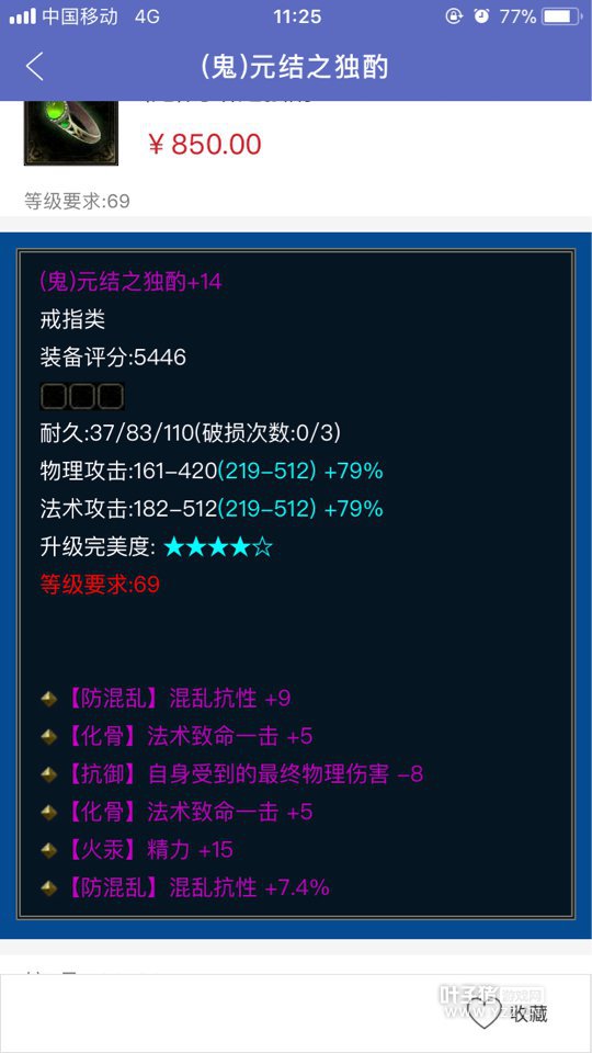 倩女幽魂中69级虽然是最低的卡级阶段,但是69的大神却是不少的,这个六绝双法术致命一击加双混乱抗的戒指,在69级也算是一个不错的小极品了,毕竟69的魅者主要还是走的混乱路线,有致命有抗性! 点击查询倩女幽魂一掌山河图坐标,更多精彩内容,尽在叶子猪倩女幽魂。 [编辑:子衿]