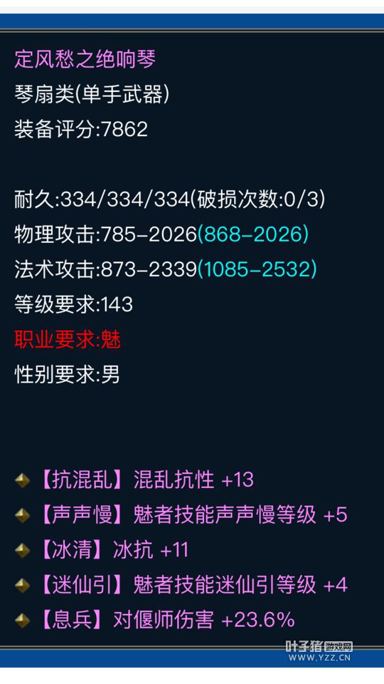 倩女幽魂中魅者这个职业,把技能等级堆起来遇到了是非常头疼的。哪怕打不死人也能用技能恶心死人,最煎熬的还是被魅者一点一点磨死!这两把武器都是魅者非常喜欢的武器! 137的鬼扇子,最大魅者声声慢,醉花阴双6加混罗衣5的扇子,三70不是梦! 143的魅者武器,虽然不是鬼装,但是固定混乱抗加声声慢迷仙引,再洗洗也是非常好的武器! 点击查询倩女幽魂一掌山河图坐标,更多精彩内容,尽在叶子猪倩女幽魂。 [编辑:子衿]