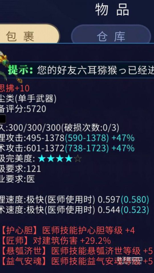 倩女幽魂中要想做一个合格的医师,提高技能等级非常有必要,因此很多医师都选择用红扫把!固定的护心胆加悬壶济世,还有益气安魂的扫把,这扫把可以说是极品的属性了,但是却是121的扫把,可惜了这么好的属性,不然能值一套海景房! 点击查询倩女幽魂一掌山河图坐标,更多精彩内容,尽在叶子猪倩女幽魂。 [编辑:子衿]