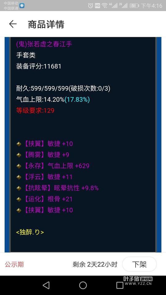 倩女幽魂中原本手套是固定的双抗,但是一些玩家为了追求其他极致的属性,这位玩家可以说抽的一手好冰了。原本固定的双抗抽没了,抽出了固定的三敏捷一气血上限,又洗出了一个晕抗百分比!变成七绝四敏双血一晕抗比! 点击查询倩女幽魂一掌山河图坐标,更多精彩内容,尽在叶子猪倩女幽魂。 [编辑:子衿]