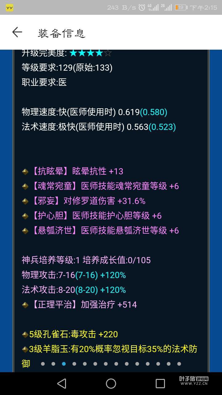 倩女幽魂中不管什么职业把技能堆的越高越好,医师这个职业更是这样!这把武器可以说是医师的极品武器了,护心胆加悬壶济世还带着魂常宛童,全部都是有用的技能,堆个三70技能完全没问题,而且还带眩晕抗性! 更多精彩内容,尽在叶子猪倩女幽魂。 [编辑:子衿]