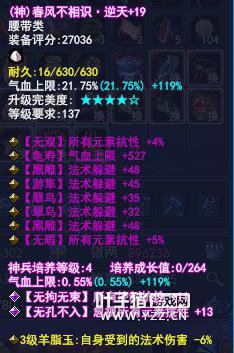 倩女幽魂中的装备属性很为难强迫症玩家,如果属性全都是不一样的还好,就怕这条有很多条一样的属性,偏偏只有其中一两条不一样!像这个腰带,差一点就治愈好强迫症了,逆天双元素抗百分比加五法躲! 更多精彩内容,尽在叶子猪倩女幽魂。 [编辑:子衿]