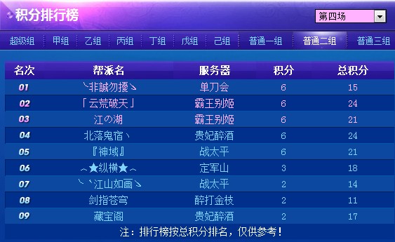 跨服帮会联赛第四联 6.21第四轮比赛速报