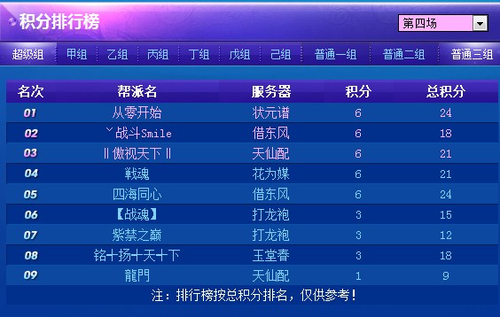 跨服帮会联赛第四联 6.21第四轮比赛速报