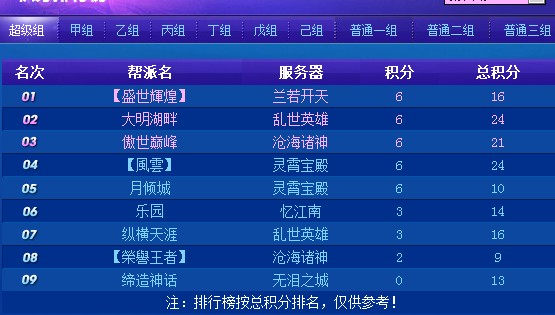 跨服帮会联赛第四联 6.21第四轮比赛速报