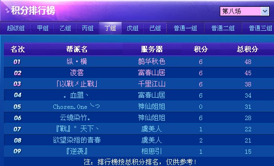 跨服联赛四联 第八轮赛果及积分排名速报
