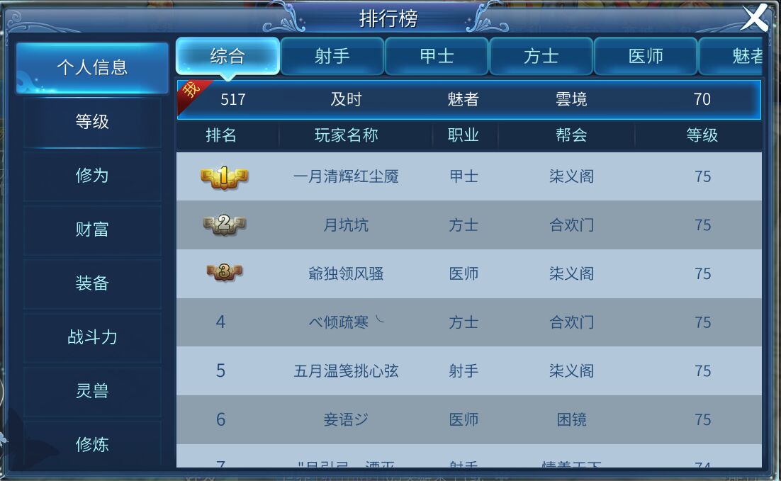 | 射手 | 甲士 | 医师 | 魅者 | ||||||