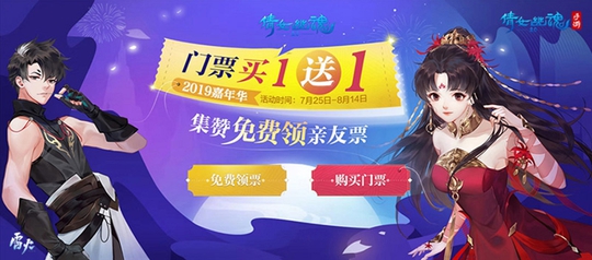 全民争霸赛决赛也将火爆开启,开发组将现场曝光年度计划。这个周末如此丰富多彩!现在购买嘉年华门票买一送一,参与活动集赞就送亲友票,2019年倩女手游嘉年华,等你来玩!