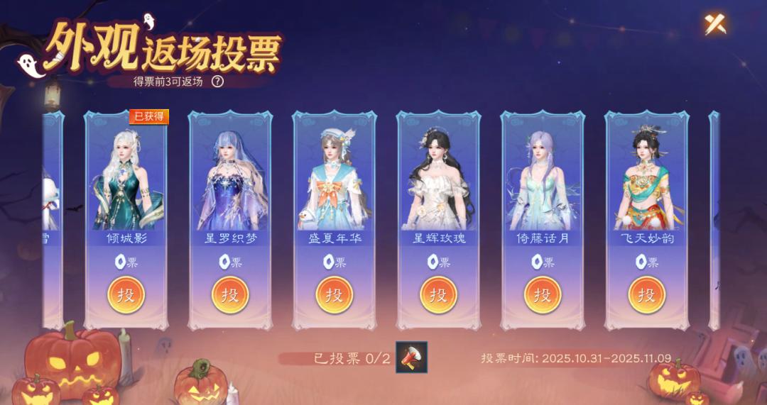 金沙镜的乌木小妖在沉香古木下拾得了一片回忆之叶: 记忆的主人是一位异乡人,他带着一颗神奇的金南瓜来到中原,每当夜幕降临,这颗南瓜便会散发温暖的光,传说它的光能为人们驱散噩梦。但突然有一天,异乡人回到家中,却发现南瓜不见了,而噩梦却在村中蔓延…… 这段回忆到此戛然而止,乌木小妖们好奇金南瓜的下落,想凑齐所有与异乡人和南瓜有关的回忆。但时过境迁,许多事情连老树也不能知晓全貌,于是乌木小妖们前往三界各地,希望寻找到与金南瓜有关的线索! 当然,金南瓜的存在也吸引了不少觊觎它的邪恶存在......帮助乌木小妖,守护金南瓜,可少不了各位玩家伙伴的帮助!快跟着菌菌的脚步来看看这场幻夜里到底有什么奇妙的玩法吧~ HALLOWEEN 噩梦退散 乌木小妖们找到了金南瓜,却发现金南瓜吸收了太多噩梦,被噩梦反噬,幻化出了噩梦领主! 10月31日—11月16日期间,小伙伴们可组队参与噩梦退散副本,帮助阿乌们击败噩梦领主,换三界一夕安宁美梦。 *本次【噩梦退散】玩法对boss噩梦领主的模型进行了大更新,将给小伙伴们带来更加身临其境的体验! 噩梦领主模型 ?技能展示 玩法奖励 首次通关普通模式与英雄模式将获得好梦积分+10; 每日通关普通模式,将获得幻灵好梦礼包,好梦积分+10;英雄模式更有队伍伤害挑战好礼等你来拿! HALLOWEEN 夺瓜奇兵 天选勇者,夺瓜争先!变身阿乌的大乱斗活动来喽! 潜伏着的恶念乌木妖,趁着众乌击败噩梦领主的瞬间偷走金南瓜,藏匿在迷雾森林,乌木小妖们争先恐后前往搜寻! 10月31日—11月16日 12:00-23:30期间,30级以上的玩家可以通过单人或多人组队匹配的方式参与【夺瓜奇兵】活动,小伙伴们将化身乌木小妖,装备特殊技能,通过收集南瓜或击败对手获取经验,夺回大南瓜就看你们的了! 使用特殊技能 收集南瓜涨经验 击杀对手涨经验 *当经验满足升级条件时,乌木小妖将进阶为更加强大的阿乌,并随机获得一个新技能,被击败将失去一部分经验。 阿乌升级 *价值大量经验的金南瓜将于第2分钟在地图中央刷新,同时外围的小南瓜将停止刷新。小伙伴们需要前往争夺金南瓜并保护金南瓜到最后! *注意:金南瓜将在被击败时掉落,可在地图中查看金南瓜位置。 玩法奖励 参与夺瓜奇兵玩法将获得好梦积分+10,玩法结算时,排名前三的小伙伴将获得金风绮梦礼包! 累计获得五次前三名还可额外获得金风绮梦礼包哦~ HALLOWEEN 筑梦奇旅 金南瓜终于在大家的努力下被夺回,阿乌们将它种在金陵城的水池中,但很快你们发现,只有用曾经美好的记忆浇灌,金南瓜才会散发出驱散黑夜的力量。 本次幻灵奇妙夜活动期间,玩家们将体验到世界收集事件【筑梦奇旅】下夜晚的金陵城,并收集散落各地的回忆之叶,再次点亮金南瓜,让好梦伴随每一个人~ 10月31日—11月16日【筑梦奇旅】活动期间,参与一条龙,师门任务,重温剧情,关宁校场,帮会大盗,帮会货运,宝图任务,即有机会获得香甜南瓜和回忆之叶~ *受噩梦领主影响,金陵城在活动期间每日22时—次日7时将被黑夜笼罩。 *主城金南瓜将根据玩家的收集进度出现奇妙的变化。 HALLOWEEN 时装返场投票 本次返场投票活动将有十二套时装参与投票,另有两套材质迭代后的神秘时装直接参与返场! 返场投票时间为 10月31日10:00—11月9日23:59 返场上架时间为 11月10日10:00—12月17日23:59 投票要求: 所有等级达到50级的玩家初始拥有3次投票机会,风尚度位于本服排行前100的玩家初始拥有5次投票机会; 投票规则: 本次返场为全服投票,所有服务器玩家投票数据同步汇总并显示,男女角色为同一票池,累计投出2票即可领取配饰【传佳音】; 返场规则: 最终票数前三的时装将于11月10日上架灵玉商城。总票数排行1/2/3名的时装价格将分别为1588/1688/1788灵玉; 神秘时装惊喜返场! 本次返场将设置两套材质迭代后的神秘时装,不参与投票,与投票时装同步上架,小伙伴们敬请期待吧! HALLOWEEN 顺风车来啦! 骑上我心爱的小摩托,它永远不会堵车~南瓜顺风车坐骑驾到,多色坐骑带起缤纷的糖果轨迹,专属南瓜精灵随从紧跟身后,万圣街头畅行无阻~ 本次顺风车坐骑盲盒上架商城,小伙伴们可在商城购买盲盒后随机抽取美团瓜(30天),宅鲨送(30天),闪送兔(30天),饿了哈(30天),柴乐送(30天),狸速达(30天)等其中一个坐骑;璇玑阁则可兑换顺风车坐骑自选礼盒(永久)! 叶子猪手游通-温馨提示:搜索“倩女手游QQ群”127405013,加入叶子猪倩女交流平台,专门为玩家提供最新游戏攻略、资讯以及礼包领取!还会不定时发放丰厚玩家福利!赶紧邀请小伙伴,一起来畅玩游戏吧!