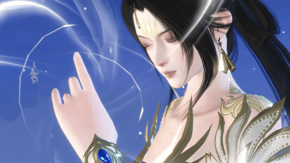 面饰上新额间一缕流金剑纹,是女剑仙独有的专属印记。眼波流转间锋芒暗藏,正是剑意萦怀、不怒自威的非凡气象。