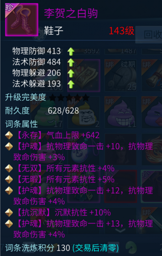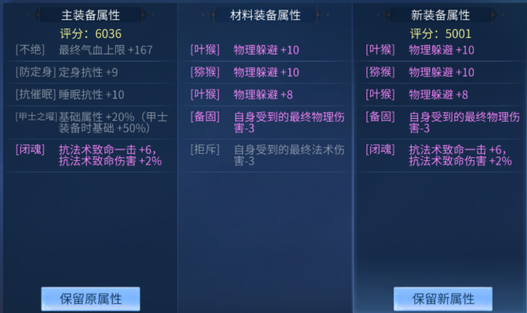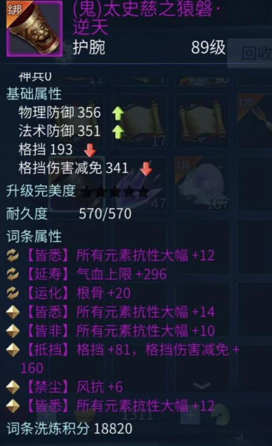 走躲避路线的小伙伴在选择护心镜时,往往会追求紫装+多躲避词条,但除此之外还有一种更细节的选择,便是鬼装+多躲避词条。而这件护心镜,恰恰就做到了这一点,一次性熔炼进3条物理躲避,如果第四条再合进甲士之曜的话,这件护心镜直接跻身毕业装行列。 - 来源:投稿@Murk。 - 除了护心镜,背饰的熔炼同样考验细节与运气,这件6敏捷背饰由两件4敏捷熔炼而成,相比5敏捷+5敏捷的组合,更加节省成本,这运气当真让菌菌羡慕! - 来源:投稿@Murk。 - 这件手镯的原属性相当适配魅者小伙伴,不仅拥有强混乱,还有无钻词条来提升命中,同时还携带了2条全元素抗%,而小伙伴后续又洗出3条全元素抗%,如果让大家来选,哪边的词条更让人心动呢? - 来源:投稿@宝妹妹·° - 菌菌觉得这把137级鬼装木剑,一定天生自带气运buff!据投稿小伙伴描述,这件装备刚出的时候准备卖掉,但是看见易市价格较低,索性就抽了两次,没想到直接抽出固定不修,后续洗了33次便拿下双五十,这到底是什么神仙运气! - 来源:投稿@穗穗 - 无独有偶,这件护腕同样拥有幸运加持,小伙伴表示自己原本用1.8万个净瓶洗出了逆天三大幅,后续仅抽冰一次,便得到了第四条大幅,双气血加成+格挡+四大幅的护腕,相信能为小伙伴的防御属性提供不少支持。 - 来源:投稿@泠音 - 紫装界目前最流行的装备,就是在防御装备的固定词条中,加入两条全元素抗%,而这件金属盔恰好就带有2条全元素抗%,并且附带了力量与定抗词条,在单挑中面对方士、剑仙,乃至战狂、影灵都有不错的效果。 - 来源:投稿@IIIIlIIlIlIlII - 还有一双鞋子,与上件金属盔同属实用型装备,不仅固定位携带双全元素抗%,并且130分就洗炼出3条抗物理致命,其余词条同样可圈可点,在实战中必定能发挥出不错的效果。 - 来源:投稿@IIIIlIIlIlIlII - 叶子猪手游通-温馨提示:搜索“倩女手游QQ群”127405013,加入叶子猪倩女交流平台,专门为玩家提供最新游戏攻略、资讯以及礼包领取!还会不定时发放丰厚玩家福利!赶紧邀请小伙伴,一起来畅玩游戏吧!