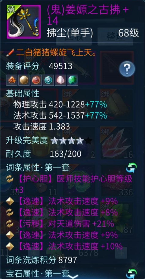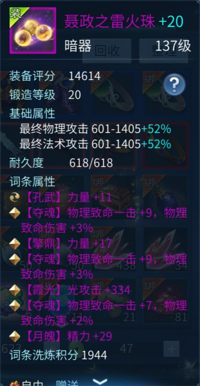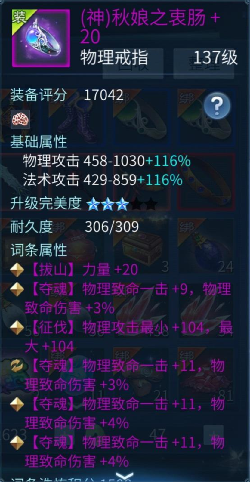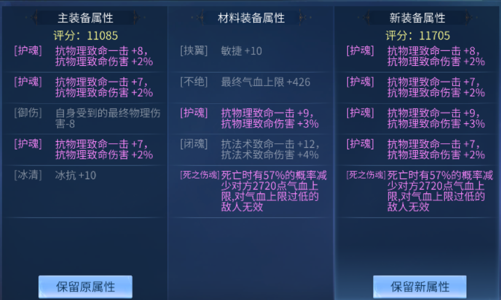 四条逸速拉满法术攻速,同时护心胆技能的加成,让号主的解控能力更进一步,在如此高攻速的增益下,相信在团战中能做到解控、加血两不误,生存与续航全面兼顾。 - 来源:投稿@阿乐不快乐 - 这件戒指固定位拥有致命与高数值力量词条,同时随机位还洗出了两条物理致命,输出与致命层层叠加,相信是不少物理输出职业的本命戒指。 - 来源:投稿@花夜 - 虽然是紫装暗器,但是在三条物理致命与双力量的叠加下,堪称暗器界的输出怪,非常适合各位战狂小伙伴。 - 来源:投稿@花夜 - 两条不修+无钻,直接将武器的基础属性拉满,双敏捷的增幅下,让这把109级长杖的基础攻击拉升到8085的高度,妥妥的法系杀器! - 来源:投稿@很夜很温柔 - 这把木剑拥有三条最大,还附带了法术攻速与智力词条,同时在方士之咒的加成下,让号主的无限腹语更容易达成,堪称是方士的毕业级木剑。 - 来源:投稿@子南 - 这件高等级暗器的熔炼图,可以算是标准的职业克制熔炼模板,将一件双福佑+职业之曜的暗器作为主装备,熔炼材料装备的职业克制词条。这位投稿小伙伴也是非常幸运,成功合出了这件毕业级的止战暗器。 - 来源:投稿@旷世奇才° - 本期牛图投稿的这件装备,可以说在整个三界都非常罕见,左侧主装备为鬼装暗器,与材料装备的双福佑+四致命紫装暗器进行熔炼,两者因为装备品质不同无法锁定词条,并且一旦失败,材料装备便会消耗掉,然而这位号主在幸运之神的眷顾下,竟然直接将紫装暗器的词条全数保留至鬼装暗器中,让攻击属性再度提升! - 来源:投稿@、ι.﹎晨*⒈ - 类似的极品运气,菌菌这里还有一例!两件鬼背饰在不锁词条的情况下进行熔炼,一发熔进固定四条抗物理致命,这运气真是挡都挡不住! - 来源:投稿@Murk。 - 叶子猪手游通-温馨提示:搜索“倩女手游QQ群”127405013,加入叶子猪倩女交流平台,专门为玩家提供最新游戏攻略、资讯以及礼包领取!还会不定时发放丰厚玩家福利!赶紧邀请小伙伴,一起来畅玩游戏吧!