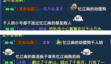 对于跨服押镖不吃药被杀又BB的人来说,只想说两个字:活该! >>>>>倩女幽魂2押镖攻略:平民安全省事技巧分享 >>>>>跨服押镖必备资料:玩家绘制跨服地图全景 >>>>>内环竞速也不慢!倩女2跑商最速心得分享 有玩家在押镖的时候被忆江南的其他玩家劫镖了,愤而发了喇叭怒骂,结果引来一片围观和反驳。。。