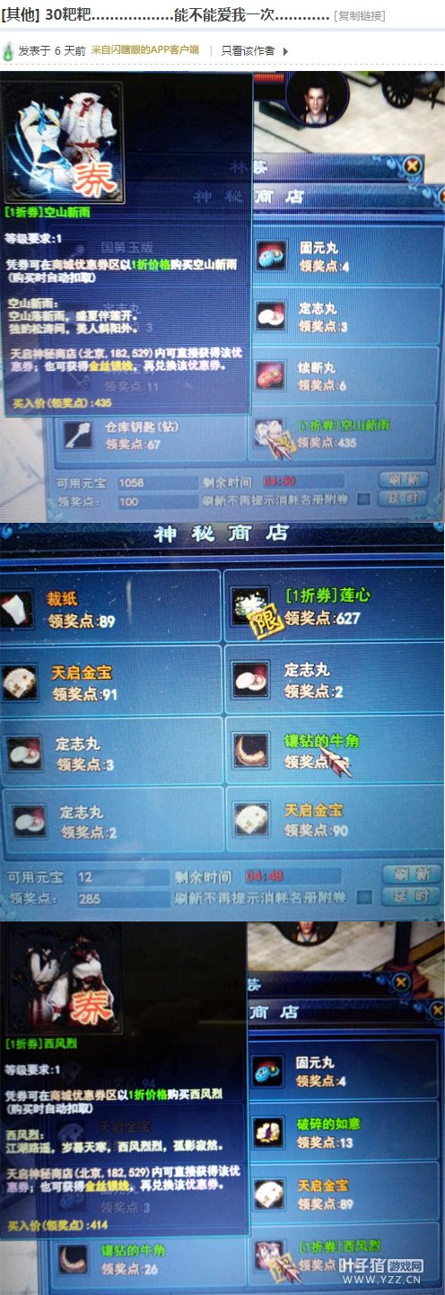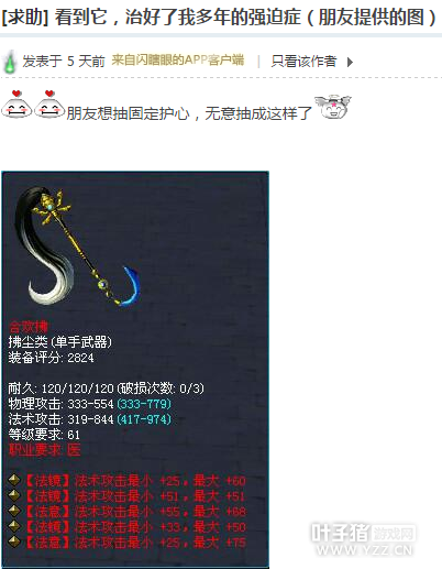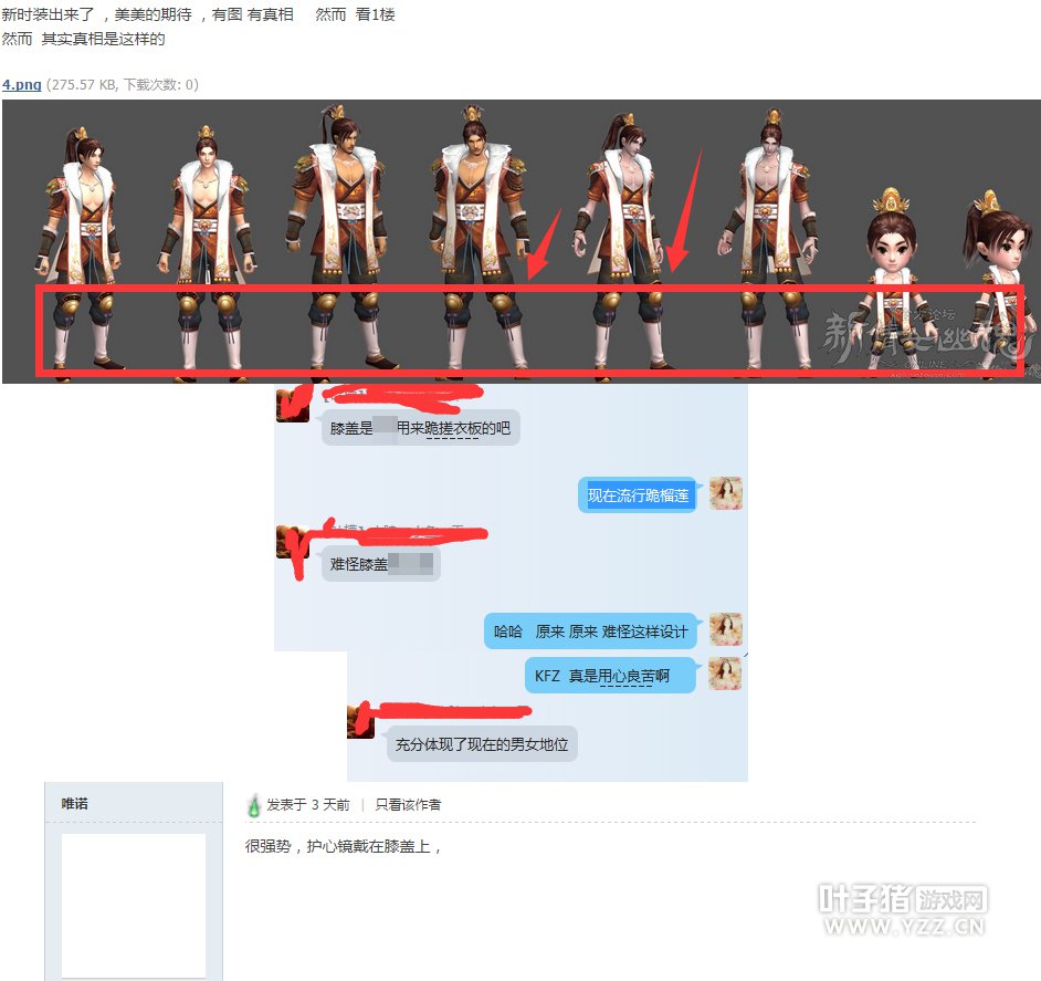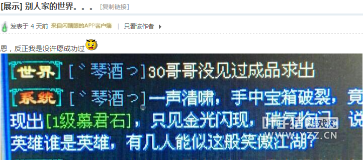 新时装御龙行你们都入手了没有呢?眼尖的小伙伴,在观察新时装之余,还发现了隐藏的新时装秘密用法。男同胞们,你们懂了吗? 有一位来问价的小伙伴亮出了自己刚在易市秒到的头盔,这个头盔吧……怎么看……怎么觉得……跟楼主说的……哪里有点对不上?可能是少了一个字? 这69的奶妈能接受不?总体来说还是挺整齐的,但是还是有强迫症患者表示数值不一样,不能忍信不信抽你 连续3次抽到一折券,囊中羞涩买不了,这是一种多么痛的领悟……不知道结局是怎么样,楼主,你是充钱了?还是充钱了? 魅者小神器吗?真是见了“鬼”了……你有混,我有抗!后面这件猜猜是在什么部位?据说是在105衣服上 双无钻鞋子,偷偷憋住不能笑其实也没错啊,一双鞋,一只脚一个无钻,就是双无钻,没问题的 这样的奶妈你们见过吗?完美诠释了“每一面都美”,三百六十度完全无死角。如果你走在路上碰到这么美的姑娘,就及时娶了吧! 这两个家园装修得很有格调啊,第一个吧,拼成了一个动感光波的造型图,一看就是习武之人。第二个吧,拼出了人在遛狗图,人与自然和谐相处厉害啦~ 现在刷喇叭已经out了你晓得吗?现在流行的是世界喊话你们这么做,喇叭不服啊!希望大家不要放弃喇叭,再给喇叭一些表现的机会
