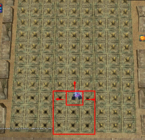小技巧: 每站在一个钉板上,最重要的是站在一个适当的地方,如下图: 如果是中央的钉板,则需要距离前左右三块最中央的距离,也就是这一块 如果是靠近边缘的钉板,那边就要站在最近邻前方和侧面的一块