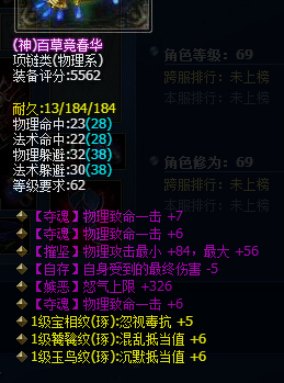 有爱好卡级的玩家总结了69级新锐组的十大比武神射手,这个等级段射手有多牛就不用我解释了吧! >>>>>逆天暗加成:浅谈倩女2物理系法术躲避数值 >>>>>一个射手的独白:感谢法躲流与控制的逆天 >>>>>倩女2藏宝阁焦点关注:三大极限射爷对比 NO.10 彼岸花 ≈.王大锤℡ 底子相当不错的一个号 拥有超高的致命~首饰基本都是三致命的,打击能力很强~ 武器加强一下的话排名可以更靠前 |