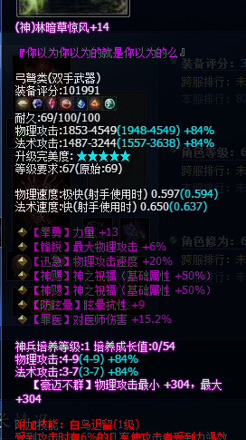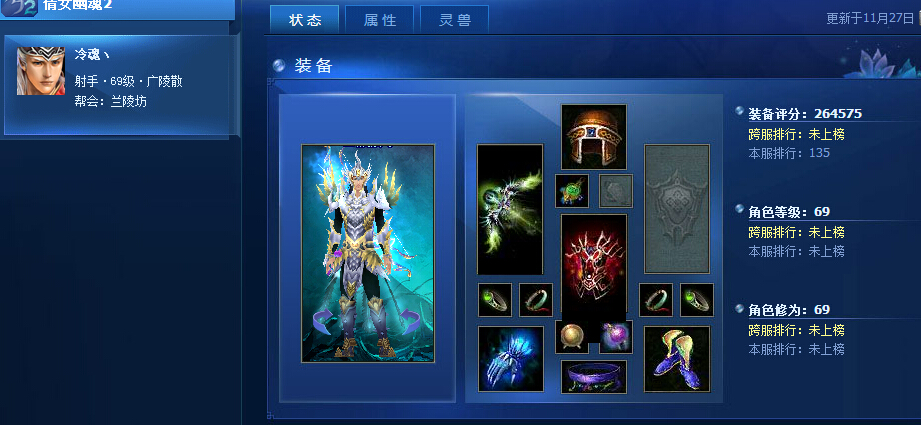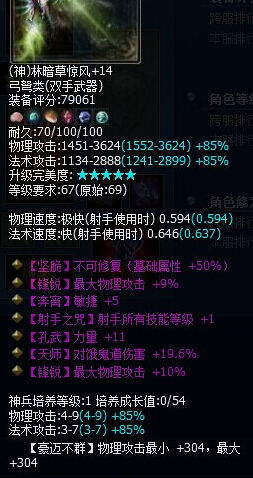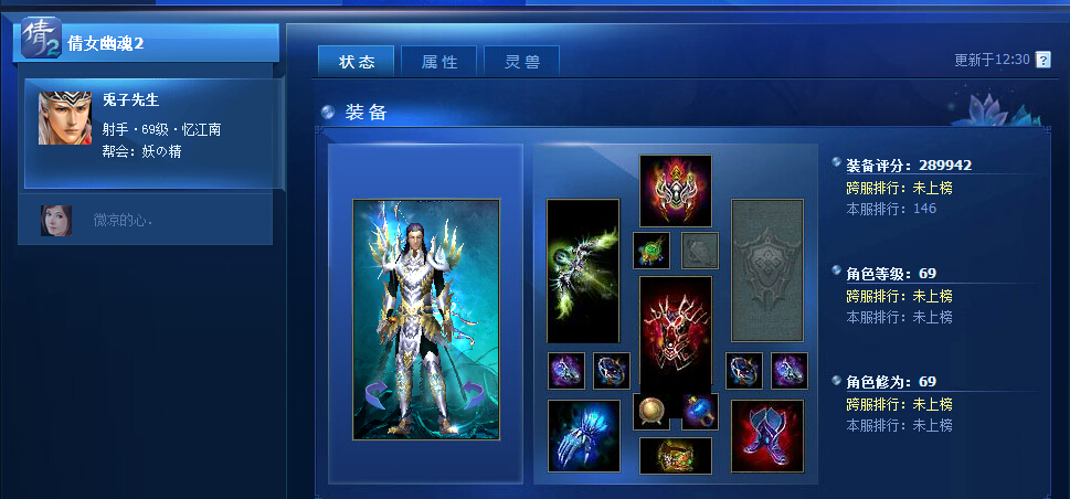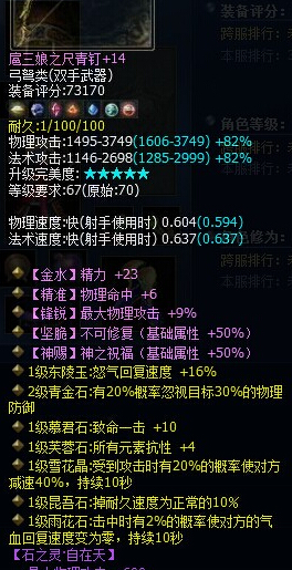 有爱好卡级的玩家总结了69级新锐组的十大比武神射手,这个等级段射手有多牛就不用我解释了吧! >>>>>逆天暗加成:浅谈倩女2物理系法术躲避数值 >>>>>一个射手的独白:感谢法躲流与控制的逆天 >>>>>倩女2藏宝阁焦点关注:三大极限射爷对比 NO.10 彼岸花 ≈.王大锤℡ 底子相当不错的一个号 拥有超高的致命~首饰基本都是三致命的,打击能力很强~ 武器加强一下的话排名可以更靠前 NO.9 千里江山 伤心欲绝的小朋友 拥有将近1万2的超高防御 无神兵2.16万的物理输出~ 不过不可修的武器耐久要快掉0了,还需要改造啊。 NO.8 姑苏行 ╰ゝ黎﹍ヾ (原名思念) 69级法躲流射手的创始人 为69射手开辟出了新道路~据说是堆双躲避的 物理躲避也很给力~ 攻击虽然不是很出众,但比武的时候可以进行持续输出 杀伤力不可小视 NO.7 圆月弯刀 羽哥(已拆) 跨服战场六的一个神话 仅七绝无钻的武器能达到这个输出和致命实属不易~ 各项属性都很高 拆了真的是挺可惜的 NO.6 夫子庙 春春天 9目前唯一一个评分上30万的射爷~拥有2.45万的输出 140+的物理致命,配合武器的仇医 秒医生杠杠的 NO.5 广陵散 冷魂丶 69玩家都熟悉的村长大叔~也是高攻击+高致命的结合体~血防属性也很给力~关宁的大杀器 NO.4 梅花三弄 ヅ蛙鸣扰梦ぃ(原名老毕) 老毕 2万6的物理攻击 物理致命也有130+好像 但这不是重点 重点是他的法躲装备~ 目测应有1400左右的法躲 在比武场上可以大幅降低无解混魅者所带来的干扰 进行强大的持续行攻击~ 相当强力的一个射爷~ NO.3 游园惊梦 ”织梦纳斯ゞ. 他只有90致命,他没有法躲,但是他有69最高的物理输出 无状态2万7的物理攻击 配合侠客的雄心 然后一个致命 惨兮兮~~ NO.2 灵岛仙踪 匪石° 匪石的装备可以说是老毕的进阶版~更高的法术躲避 还有武器上面的克医生~ 无论关宁还是比武 都具有超强的杀伤力 可是和第一名的装备相比 还是相差甚远. NO.1 忆江南 兎子先生(毫无悬念) 集攻击、致命、法躲、混抗、攻速于一身的男人~ 武器打攻速石之灵有160的物理致命 外加2.45万的物理输出,极限法躲1550,极限混抗将近350 上面的逆天无钻轻鸿衣服是2级善根生的,截不到石之灵图。他还有好多切装,69玩得久的朋友都知道,我就不费时间去要图了