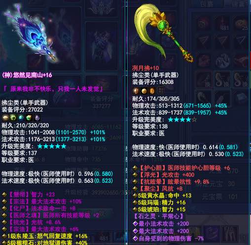 一个标准奶妈的抗性装备,以及关于抗性上的一些小细节,可能对你的抗性装打造之路有所帮助。 >>>>>做好细节:倩女幽魂平民医生打造心得分享 >>>>>强力减伤起死回生:浅谈医师十大释放技巧 >>>>>新倩女幽魂医师心得:详解负面状态应对法 不要说开底托很贵,纹饰很贵,纹饰可以打3级的也可以,看个人了,底托一套下来估计300R这样,反正我没失败过,不会开底托的可以问我。这些装备是我花1个多月天天蹲易市搜的,都是盗版装备,便宜的300W贵的3500W项链是最贵的300R,没洗出抗性来 毕竟我不爱洗 洗这个东西真是无底洞,我还是比较喜欢提高看得见的东西。 这是我换装的武器 配上那个项链,因为我是满补天,传家宝也有安魂切装还有59级安魂,奶一口2W9这样,奶自己2W1好像。护心又有67级(最高)这样比较方便,正装武器也不是什么号石之灵 就一个东陵玉 别问我有没有用,我就觉得好看 才打的 光效看起来很牛逼 哈哈哈哈。 然后就是腰带和衣服的神兵,露珠本身就有一些129的七绝装备,拆了打了衣服4级,腰带是129的 考虑到带3气血,相当于137五钻就没换,而且也木有好一点的137腰带,自己洗脸不好给上千吧。腰带打了一个水抗石头,毕竟露珠没什么钱打石头...浑身就观自在,大无畏,外加武器的东陵玉